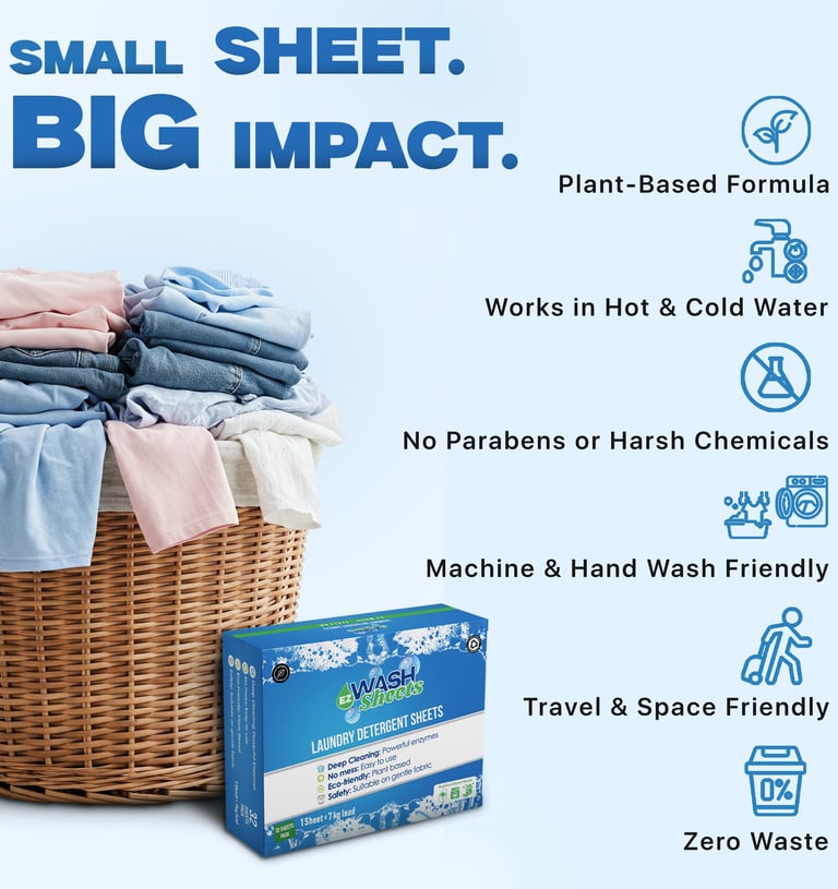 Easy to use..No residue..Gets our cloth clean and neat..very innovative and organic product.